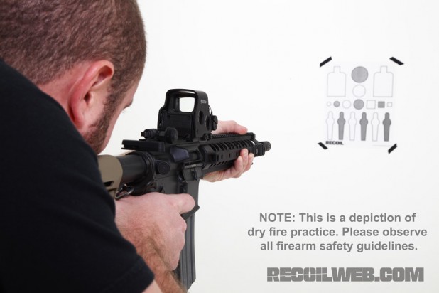 Editorial Rifle and Shotgun Dry Fire Drills Recoil Staff January 15, 2012 Join the Conversation At RECOIL, we review every product fairly and without bias. Making a purchase through one of our links may earn us a small commission, and helps support independent gun reviews. Read our affiliate policy. Find out more about how we test products. Shooting Fundamentals Dry fire is very useful to solidify your fundamentals. Be sure to follow all safety guidelines and make sure there's no live ammo or loaded magazines anywhere near you while you practice. And even though your gun is unloaded, choose a safe spot as your aiming point. Stance & Grip: If you have not yet mastered your stance, grip and natural point of aim, dry fire is a good way to do so. It helps to obtain instruction from a reputable trainer so that you are practicing appropriate techniques that will work for your needs – otherwise you might be ingraining bad habits. Trigger control: Develop that perfect trigger press. With gun on target, slowly press the trigger until it breaks; work on keeping everything as motionless as possible. As you gain proficiency, begin to also work on your breathing. Sight alignment & picture: With gun on target, obtain proper sight alignment and picture, with particular emphasis on obtaining a consistent cheek weld behind your sights or optic. With an iron sighted rifle, practice shifting focus between the target and the front sight post. With an optic, just superimpose the reticle over your target. You can also perform this drill with multiple targets, laterally and at different distances, to practice acquiring your sight picture as quickly as possible. Shooting with both eyes open: Practice acquiring a sight picture with both eyes open and learning how to ignore the extraneous double image. Start with your gun on target, then progress to presenting the gun on target and transitioning between targets, and work on quickly picking up a sight picture with both eyes open. From ready: From various slung and ready positions (low ready, port arms, etc), practice presenting your gun on target. Practice starting from various different starting positions, turned away from your target, and while moving. First shot: Set a par time on your timer. From the holster, draw and engage target. Be sure to follow through so that you can assess your aim. Target transitions: Engage multiple targets (e.g. the pepper poppers or two silhouettes on the RECOIL dry fire target). Check that you are leading with your eyes. You can place two or more separate targets farther apart to work on effectively rotating your torso. Safety manipulations: Until second nature, it's very helpful to practice manipulating your safety mechanisms. Some weapons in particular benefit from practice, such as the cross bolt safeties you often find on shotguns and the safeties on rifles like the M14 or AK. You can practice all of these drills on your strong side, support side, and even one-handed. Weapons Manipulations Practice these drills stationary, in different positions, and while moving. Use a timer to track your progress. Rifle Reloads Emergency reloads: Gun on target, bolt locked back (if applicable), empty magazine in gun, magazine loaded with dummy rounds in pouch. On start signal, execute an emergency reload. Proactive reloads: Magazine in gun, magazine in pouch. Eject the magazine, draw a fresh magazine and insert into the gun. Tactical reloads: Magazine in gun, magazine in pouch. Draw a fresh magazine, eject the old magazine into your support hand, and insert the new magazine into the gun. Stow the old magazine. Shotgun loading Loading the tube: Load dummy shells into your preferred shell carriers (e.g. side saddle, shell caddy system, loops, etc). Practice loading your shotgun's mag tube; you can set par times for loading 4 or 8 shells. Chamber load: Empty shotgun, dummy shells in your shell carriers. Practice loading a shell into the empty chamber and closing the bolt. Select load: Shotgun loaded with dummy rounds (both in chamber and tube). Practice selecting a specific dummy round to load into the chamber to replace the chambered round. The specific procedures to accomplish this will vary by weapon system. Other Weapon transitions: Sidearm holstered, long gun in hand. Practice transitioning from your long gun to your sidearm, with and without a sling. Strong to support side transitions: Practice transitioning your long gun back and forth from your strong and support side. Malfunction clearance: While specific procedures are beyond the scope of this article, you can also practice malfunction clearance at home. Movement Moving while handling a firearm and shooting while moving are important skills to work on, and if you have the room you can practice at home. Be very cognizant of your muzzle. Getting in and out of positions: Practice moving into or out of positions, then engaging the target. For example, from standing to kneeling or prone and vice versa; running to a particular position to engage a target; or quickly finding solid supported and unsupported firing positions with your rifle. Shooting on the move: Gun on target. Walk toward, away and laterally to the target and keep your sights on target as best as possible. As you get better, use a smaller target (e.g. the different sized circles on the RECOIL dryfire target). Why you can trust RECOIL Since our founding in 2012, RECOIL remains the premier firearms lifestyle publication for the modern shooting enthusiast. We deliver cutting-edge coverage of guns, gear, accessories and technology. We go beyond basic reviews, providing no B.S. buyer’s guides, hands-on testing and expert analysis on everything from firearms and survival equipment to watches and vehicles. Our reviewers are the backbone of our operation and come from diverse shooting backgrounds: Former law enforcement, military veterans, competitive shooters, seasoned hunters and plain old firearms enthusiasts. Furthermore, we