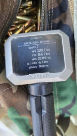 Chrono and precision testing were done with a 20” Rosco barrel and a Vortex 1-6x Razor LPVO. This rifle has been extremely good to me at long range with consistent hits on steel to past 700 yards using 63gr Magtech.