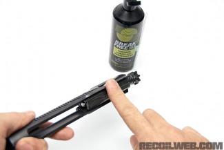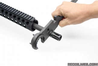 Issue 06 AR-15 Upper Receiver Assembly Recoil Staff 1 Comments, Join the Conversation At RECOIL, we review every product fairly and without bias. Making a purchase through one of our links may earn us a small commission, and helps support independent gun reviews. Read our affiliate policy. Find out more about how we test products. Warning! When handling firearms, always observe safety rules and the precautions set forth in the firearm’s owner’s guide. Be certain that your firearm is unloaded and made safe before proceeding with this DIY. Understanding how an AR-15’s upper receiver is assembled allows you to not only assemble a fully functional upper out of parts, but also gives you the knowledge to do preventive maintenance, to swap parts to keep your upper running right, or to customize your upper as you see fit. With the current market being as hot as it is, many AR-15 enthusiasts are finding it increasingly difficult to find factory-assembled uppers available at the store. Although buying a complete upper from a reputable company comes with assurances that the quality and workmanship are all there — along with a great warranty in many cases — there is something to be said about building your own upper. One of the advantages of rolling your own is selecting the exact specs and components you want. Another is gaining the experience and better understanding of how each part interacts with one another. Knowing how your gun operates can be as important as how to shoot it, as this insight can help you diagnose problems on your own, rather than relying on an armorer. The AR-15’s upper receiver is where the bulk of the action occurs within the rifle. It is in the upper that accuracy and reliability are mostly determined. While there are many methods of assembling uppers that can make it quite an art form, we’ll leave all the tricks of the trade to the master gunsmiths. Within the scope of this article, our goal is to focus on the basics with this build. AR-15 Upper Receiver Assembly To keep things easier to follow, let’s go about this in sections. Parts for each of the sections will be called out at the beginning of each section. I. Stripped Upper Receiver Assembly II. Barrel, Gas System, and Handguard Assembly III. Muzzle Device Timing IV. Installing Bolt Carrier Group, Charging Handle, and Accessories V. Function and Safety Inspection Featured parts and specialized tools used in this article are sourced from Brownells. Part numbers and prices are highlighted in brown so you can easily find the items we used at Brownells’ website: www.brownells.com. Start We want you to get as much out of this guide as you can, so we went ahead and disassembled the Daniel Defense A4 Upper Receiver Assembly (100-005-851 / $139.99) that the upper will be built off of. We’re doing this in case you have a stripped receiver and upper parts kit that you need to put together. Tools There are a few basic specialized tools that you will need to properly assemble an upper receiver. 1. DPMS AR-15 Upper Receiver Block 231-000-157 $45.99 2. Smith Enterprise .223 Armorer’s Wrench 851-000-068 $49.99 3. Loctite C5-A Antiseize Lubricant 532-000-012 $7.99 4. Brownells #3 Starter Roll Pin Punch 080-000-244 $6.99 5. Brownells Bench Block 080-000-493 $18.99 6. Break Free CLP 102-100-004 $6.99 7. ½-inch Torque Wrench 8. Vise 9. Hammer I. Stripped Upper Receiver Assembly Parts AR-15 Stripped Upper Receiver Forward Assist Assembly Ejection Port Cover Assembly 1. We’ll begin with installing the Ejection Port Cover Assembly into the receiver. The hinge pin has a tiny snap ring installed on it. If your pin doesn’t have it installed, go ahead and do that now. 2. With the snap ring portion of the hinge pin to your right, feed the pin into the receiver’s right side ejection port cover hole going from right to left. While doing that, thread the pin through the port cover and spring. 3 & 4. Be especially careful with how the spring is aligned. The part with the longer leg should be on the right. The shorter leg needs to be twisted clockwise one full turn before the hinge pin is fully inserted into the receiver. Don’t let it unravel before the pin is fully inserted. It’ll take a bit of finesse to get this done, but it’s doable. 5 & 6. After the hinge pin is fully inserted, test that the port cover snaps closed and springs open. If it just flops open, the spring wasn’t installed correctly. If it looks good, let’s move on. 7. Now we’ll install the Forward Assist Assembly. Place the upper receiver block securely into a vise. Place the upper receiver onto the block. It’ll be easier to accomplish the installation by starting the roll pin into the receiver. Just get it started, don’t drive it too deep, otherwise it’ll interfere with the installation of the forward assist. 8. Now let’s take a look at how the forward assist needs to be oriented. The assist works by having its leg engage the teeth on the bolt carrier to help push it into battery. We need to make sure that the engagement surface is pointed toward the carrier when we install it. 9. With the spring installed on the forward assist, slide the assembly into the receiver’s forward assist opening, making sure the orientation of the assist is correct. 10. Now for some hand acrobatics. Depress the forward assist all the way in while driving in the roll pin with the roll pin punch and hammer. That spring will want to battle you, but you will win this battle. 11. Once you have the roll pin in a ways, the pin will hold the assist, making for easier hammering. Tap the pin until it is flush with the top of the receiver’s surface. 12. Check that the forward assist button springs back into place after pressing it. It should move freely without binding. Here is your completed upper receiver. II. Barrel, Gas System, and Handguard Assembly Parts Barrel and Gas System Parts Daniel Defense M4 Stripped Barrel 100-004-633 $176.95 High Standard AR-15 Barr
