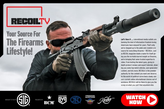 Featured Behold: RECOILtv RECOILtv August 19, 2016 Join the Conversation At RECOIL, we review every product fairly and without bias. Making a purchase through one of our links may earn us a small commission, and helps support independent gun reviews. Read our affiliate policy. Find out more about how we test products. Behold RECOILtv And there was much rejoicing. Relevant. Honest. Unfiltered. RECOILtv has all the latest guns, gear, accessories, and in-depth reviews–plus the skills you need to gain the edge. With RECOILtv you have immediate and unrestricted access to the expertise you trust and the content you deserve. Our goal is to entertain, educate, edify, enthrall, and perhaps even enlighten. Just as RECOIL magazine gives you no-holds-barred insight into the modern American firearms lifestyle, RECOILtv brings you unfettered and honest videos about the same. We will begin with 10 channels: Ballistics, DIY, Full Auto Friday, Gun Room, Mail Call, Road Trips, SHTF/OFFGRID, Sponsored Showcase, Training Tuneups, and Transport. — RECOILtv is Brought to You By: SIG SAUER RECOILtv: Ballistics You'll see at least one monthly episode of Ballistics. In these episodes we'll showcase ballistic testing and look at ammunition performance, from how new rounds react to ballistic gelatin to what they'll do to intermediate barriers. Tune in to get your learn on. — Ballistics is Presented to You By: Freedom Munitions RECOILtv: DIY (Do It Yourself) In these episodes we're going to teach you to do it yourself; to make modifications, to perform upgrades, to get it done the right way without looking for outside help. RECOILtv: Full Auto Friday Cyclic, often belt-fed, select fire, fully automatic brass-dumping goodness. That's what you can expect from an episode of Full Auto Friday. — Full Auto Friday is Presented to You By: FN RECOILtv: Gun Room History lessons, video overviews of takedowns, specifications, demonstrations, and candid reviews of every sort of firearm — including some you won't believe we got our hands on. It's one thing to watch a visit to the range with the marketing contact and latest release from a manufacturer; quite another to hit the range with door-kicking royalty or to go loud with the very last incarnation of a firearm in existence. — Gun Room is Brought to You By: Kimber RECOILtv: Mail Call Mail Call will feature incoming products, equipment reviews and overviews, and a few derptastic atrocities that demand our mockery. Here you'll see things that run the gamut of practicality and quality. RECOILtv: Road Trips In Road Trips we'll be venturing forth RECOIL style. Think Americana filmed through a gun-lifestyle lens. Travelogue, transportation, visits to badass places, time on different gun ranges, tours of interesting facilities — we refuse to be home or office bound. RECOILtv: SHTF/OFFGRID Whether you're venturing into remote places, preparing for worst case eventualities, or worried about SHTF-TEOTWAWKI, your primary concerns should be your skills and your gear. On this channel we'll be testing both. Our results may also be of interest to those of you living in parts of our country where civil unrest seems to now be a cottage industry. — SHTF/OFFGRID is Brought to You BY: Cannae Pro Gear RECOILtv: Sponsored Showcase These will be sponsored product episodes, where we bring you the best shootin' irons and most rugged thingamawhatsits the manufacturers just can't bear not to show off. RECOILtv: Training Tuneups Software should always trump hardware when it comes to where you allocate time and resources — we're going to help with that by showing you the techniques preferred by the most skilled and experienced instructors in the business. — Training Tuneups is Brought to You By: BCM RECOILtv: Transport From dune buggies to technicals, everyone loves a sweet ride. In Transport we'll be showcasing off-road, on-road, up-armored, four-wheeled, four-hooved, six-wheeled, two-wheeled, and tracked conveyances of every possible intended use. Hell, we're not even sure what we're going to be getting so there's no telling what you'll see. Want to see more from RECOILtv? WATCH NOW! Why you can trust RECOIL Since our founding in 2012, RECOIL remains the premier firearms lifestyle publication for the modern shooting enthusiast. We deliver cutting-edge coverage of guns, gear, accessories and technology. We go beyond basic reviews, providing no B.S. buyer’s guides, hands-on testing and expert analysis on everything from firearms and survival equipment to watches and vehicles. Our reviewers are the backbone of our operation and come from diverse shooting backgrounds: Former law enforcement, military veterans, competitive shooters, seasoned hunters and plain old firearms enthusiasts. Furthermore, we’re not just gun experts, but dedicated journalists who adhere to the strictest standards of our profession. At RECOIL, editorial independence is the foundation of everything we publish and the cornerstone of reader trust. Our editors, writers and content creators make all editorial decisions independently, free from outside influence. That boils down to: advertisers don’t dictate our coverage, the outcomes of our reviews or what we recommend in our buyer’s guides. First and always, our commitment is to our audience—ensuring every review and article is accurate, unbiased, and driven by real-world experience. Whether you’re selecting your next firearm, upgrading your gear, or exploring the latest innovations in the shooting world, RECOIL provides the trusted insights you need to make informed decisions. Learn more about our Editorial Standards and how we review products. NEXT STEP: Download Your Free Target Pack from RECOILFor years, RECOIL magazine has treated its readers to a full-size (sometimes full color!) shooting target tucked into each big issue. Now we've compiled over 50 of our most popular targets into this one digital PDF download. From handgun drills to AR-15 practice,