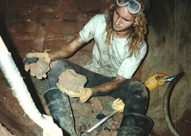 Morgan in his early years, working underground on a tunnel excavation project.