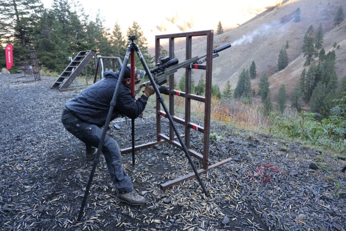 He’s explaining how to use body position, bags, bipods, and other techniques to manage recoil while shooting a rifle off a barricade. He demonstrates by launching 300 Norma Magnum rounds downrange without shouldering the gun, so you can clearly see how much it moves under recoil with each successive technique. You’re focusing so intently on his instruction that you don’t initially realize with over 1.5 seconds of flight time before hearing steel ring each time that he’s casually hammering targets at 1,200 meters in shifting 15 mph crosswinds without even looking through the scope when he presses the trigger.