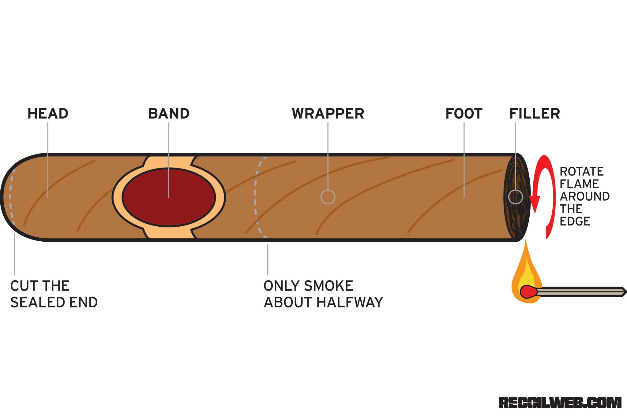 Featured Cigar Guide – Thank You For Smoking Mike Searson May 5, 2016 Join the Conversation At RECOIL, we review every product fairly and without bias. Making a purchase through one of our links may earn us a small commission, and helps support independent gun reviews. Read our affiliate policy. Find out more about how we test products. A Guide to Knowing Your Stogies Cigar smoking is special. Some of us do it every day, others never at all, but even part-time smokers will fire up a stogie on a special occasion. That may be to celebrate the birth of a child, a promotion at work, or your last night as a bachelor. Other activities just naturally lead to cigar smoking, like playing poker or shooting a machinegun for the first or even the 1,001st time. In a way, cigar culture is a bit like gun culture (and if you keep on reading you'll see the two intersect in more ways than one). There are protocols, special tools, and a subculture attached to it. We took the liberty of providing an overview of some of our favorite cigars out there. SOME ETIQUETTE We mentioned protocols when it comes to stogies, and there are a few. Violate one of these, and you'll find yourself the brunt of jokes, if not downright hostility by other smokers. This is not unlike pointing out safety violators on Instagram or YouTube, or gun gaffes in movies. New people make mistakes, but we'll help you avoid a few. Take your time smoking your cigar; one draw per minute seems right. Smoking a cigar is an experience, not a chore or a race. Hold the cigar between your index finger and your thumb, not between your index finger and middle finger. Never mind what they taught you in the lowlight shooting class about the “cigar hold.” Holding a cigar like this marks you as a novice. Only smoke a cigar about halfway. Cigars aren't meant to be smoked down to the foot. This just makes the smoke harsher the closer it gets to your face. Dispose of a dead cigar discreetly and quickly. If you think cigarette butts look nasty, cigar butts look worse. Never touch the flame directly to the foot of the cigar, simply rotate it around the edge until it begins to burn, and then puff on it lightly. Your goal is not to light the cigar on fire. Lighting a cigar should be a personal experience; never ask someone else for a light. If you find yourself without a lighter or matches, you can certainly ask to borrow a flame, but asking for a light is like asking someone to load your magazines for you. Never talk with a cigar in your mouth. Remove it before you speak. Your listeners will thank you for giving them that respect. Don't soak your cigar in anything. Winston Churchill may have soaked his stogies in brandy and Bill Clinton may have soaked them in — well, we know where — but you're not Churchill or Clinton … thank God for that one! Cigar makers have perfected the flavor profiles in their sticks. If you can't stand the taste of a cigar, then don't smoke it. Never smoke while working. Work is stressful and even though cigars are stress relieving, they're meant to be enjoyed while relaxing. Had a bad day? Wait until you get home or to the bar to unwind with a drink and your favorite smoke. The only possible exception here is the Searson Rule — whereby you can smoke while firing a full-auto machinegun. Xikar's Room 101 Collection Cigar Cutter ANATOMY OF A CIGAR Head: The end of the cigar closest to the band. This goes in your mouth, and because it's sealed, it needs to be cut. We recommend a guillotine type of cutter, preferably a double blade like Xikar's ingenious model. This prevents you from crushing the cigar and getting loose tobacco in your mouth. A knife works well for this task, but don't use your teeth to bite it off! Foot: As when talking to your boss, don't put the foot in your mouth. Filler: This is the inside of the cigar and should be a consistent blend of dried and aged tobacco. Wrapper: The exterior of the cigar that tells you just about everything you need to know. Varying in color from very light to almost black, most of the flavor of the cigar comes from the leaf in which it's wrapped. CUBAN CIGARS If you live in the United States, don't try to buy a Cuban cigar locally. A large counterfeit industry has cropped up in the United States due to the 1962 embargo, which is still in force. If you want to smoke a Cuban, you need to do it outside the United States. Note that this counterfeit industry is strong south of the border, so always make sure the tobacconist is legit before you buy one. When we started smoking cigars in the '80s and '90s, every cigar authority told us that Cubans were all hype and that anyone who knew how to make a cigar left Cuba 20 to 30 years ago. This is much like the guy who claims silencers or full-auto are useless and impractical, mostly because he doesn't own one and couldn't afford one, either. Cuban cigar making is highly regulated by the Cuban government and the standards are some of the highest in the world. They're full bodied and smoky, and hopefully we'll see an end to the 1962 embargo in our lifetimes. LIGHTING A CIGAR When you light up, try to use a wooden match to keep the taste pure. Most often, smokers are relegated to doing so outside, so butane lighters are the next best solution. Xikar's Room 101 lighter is a quad flame tabletop lighter that features an oversized push-button ignition, flush against a cylindrical metal body. A ratcheting oversized fuel adjustment wheel makes lighting a breeze, and the camera aperture-inspired lid protects the quad burners. Down from that we rely on our trusty Zippos with a butane insert and like the ones made by Derrick Obatake at Steel Flame. Xikar's Room 101 Colletion Tabletop Lighter IT ALL COMES DOWN TO PERSONAL PREFERENCE Smoking a cigar is a very personal experience. Not everyone has the same tastes, so like we recommend when choosing a handgun or a pocketknife, try to find a local cigar club or tobacconist that offers a large variety. In a 