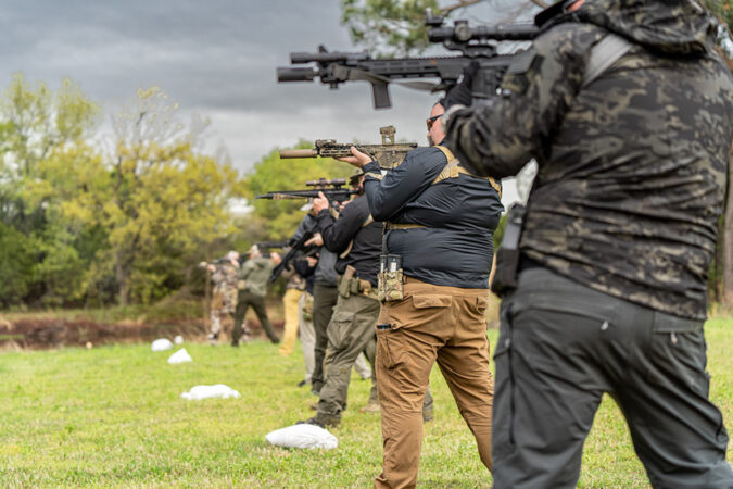 Featured [Gone Shootin’] Meadhall Range: Not Your Average Training Facility Patrick Roberts June 9, 2023 Join the Conversation At RECOIL, we review every product fairly and without bias. Making a purchase through one of our links may earn us a small commission, and helps support independent gun reviews. Read our affiliate policy. Find out more about how we test products. Suppose someone told you a backyard range in rural Oklahoma is a top destination for those serious about getting good with a gun. You might think it was a joke. But in fact, Bill and Sharla Armstrong have worked long and hard to make that statement a reality. What was once a tiny dirt berm has been transformed into a fully stocked training facility with anything an instructor might need on-site. The property doesn’t look like much more than a nice country home, like the hundreds you passed on the way to MeadHall; if you aren’t paying attention, you’ll blow right past the gate. As soon as you pull in, you might think, “great, another podunk range.” That’d be a mistake. There’s a reason many of the top instructors in the country book classes at the tactical oasis. Flash and expensive things aren’t what makes MeadHall stand out. Little things — like climate-controlled bathrooms and the endless trays of Sharla’s homemade cookie bars — make it a special place. The 10 remote-controlled turning targets and lateral moving target are awesome, and the touches that make target repair take less time away from learning are even more awesome. Presscheck Consulting’s No Fail Pistol and No Fail Rifle at MeadHall presented a great opportunity to check both out. MeadHall and Chuck Pressburg have reputations for attention to detail, which should bring out the best in both. Spoiler: It wasn’t at all disappointing. FACILITIES Inside the newly built schoolhouse, Bill and Sharla pointed students to the fully equipped kitchen, where fresh coffee, homemade cookie bars, and other beverages were waiting for the class. Since the nearest place to get lunch was more than 10 minutes away, the kitchen was invaluable and gave students a climate-controlled place to relax and recharge. Behind the classroom is a small room with a Smokeless Range simulator used for the first steps a new shooter takes in a class. More advanced courses like Presscheck’s can use it to push students well past their comfort zone without the danger of someone getting hurt. MeadHall’s fully equipped schoolhouse kitchen with unlimited cookie bars. The classroom at MeadHall is full-featured, with all the audio/visual tools you’d find in a modern classroom. For combatives classes, the classroom can be quickly reconfigured with mats to keep students out of the heat. Head out to the single 300-yard range, and you’ll find a nice shade structure at the 50-yard line wired with power and lights. Since MeadHall isn’t open to the public, it only needs one range. That allowed the Armstrongs to invest in supporting structures like the climate-controlled multi-stall men’s and women’s bathrooms. The most impressive aspect of MeadHall is its target shed, as strange as it might sound. Few things irritate professional instructors more than a poorly equipped range that forces the curriculum to be changed to accommodate shortcomings of the host. Bill keeps many targets on hand but stays in contact with instructors to update the target shed as needed. Another aspect that sets MeadHall apart is the prepared target boxes with everything the student might need. Should the instructor need a non-standard target to demonstrate something, the target shed can fill that need. Paper targets are great for accounting for every trigger pull, but they can be time-consuming. When steel makes more sense, there’s a wide selection of steel targets like regular A/C zone torsos, plate racks, and a few Texas Star-style arrays. To take it to another level, Bill installed 10 remote-controlled turning target bases that are controllable with an app, along with a laterally moving target to provide an additional element of realism rarely seen on flat ranges. MeadHall even has strobe and floodlighting at pistol distances to add to the mix. Understanding the relationship between rifle cant and bullet impact isn’t something you want to figure out for the first time when it counts. The range has well-maintained grass to keep the mud in check and shooting platforms at 200 and 300 yards, to provide a clear shot in prone at a distance. Also found at the 200-yard line is a tower that can be used for elevated shooting, rapelling, or even simulating a city building. PRESSCHECK CONSULTING With 26 years in the U.S. Army and 24 of those years spent in Special Operations and Special Mission Units, Pressburg’s background gives him a unique take on employing a firearm. While not covered in either of the classes, Pressburg is also a subject matter expert on night vision, with a class called Nightfighter on the topic. Both the classes we took, No Fail Pistol and No Fail Rifle, help students recognize their ability to make deliberate high-risk/high-reward shots and understand the risks associated with missing that life-changing shot. Students watch Pressburg demonstrate CQB offset at various distances. Refreshingly, war stories and tangents are kept to a minimum, with the focus squarely on the packed lesson plan. Pressburg leans on real-world examples, but only to teach a specific lesson or illustrate a particular concept more clearly for students. It really brings home the importance of shot placement to learn about a real-world example of someone fighting through more than half a dozen shots and surviving the fight (shout out to Jared Reston). Round accountability is heavily stressed in both classes; you can’t gather data if you can’t find the bullet hole. Targets were repaired or replaced after nearly every string of fire so that the training value of a 33-cent bullet isn’t lost by not usin