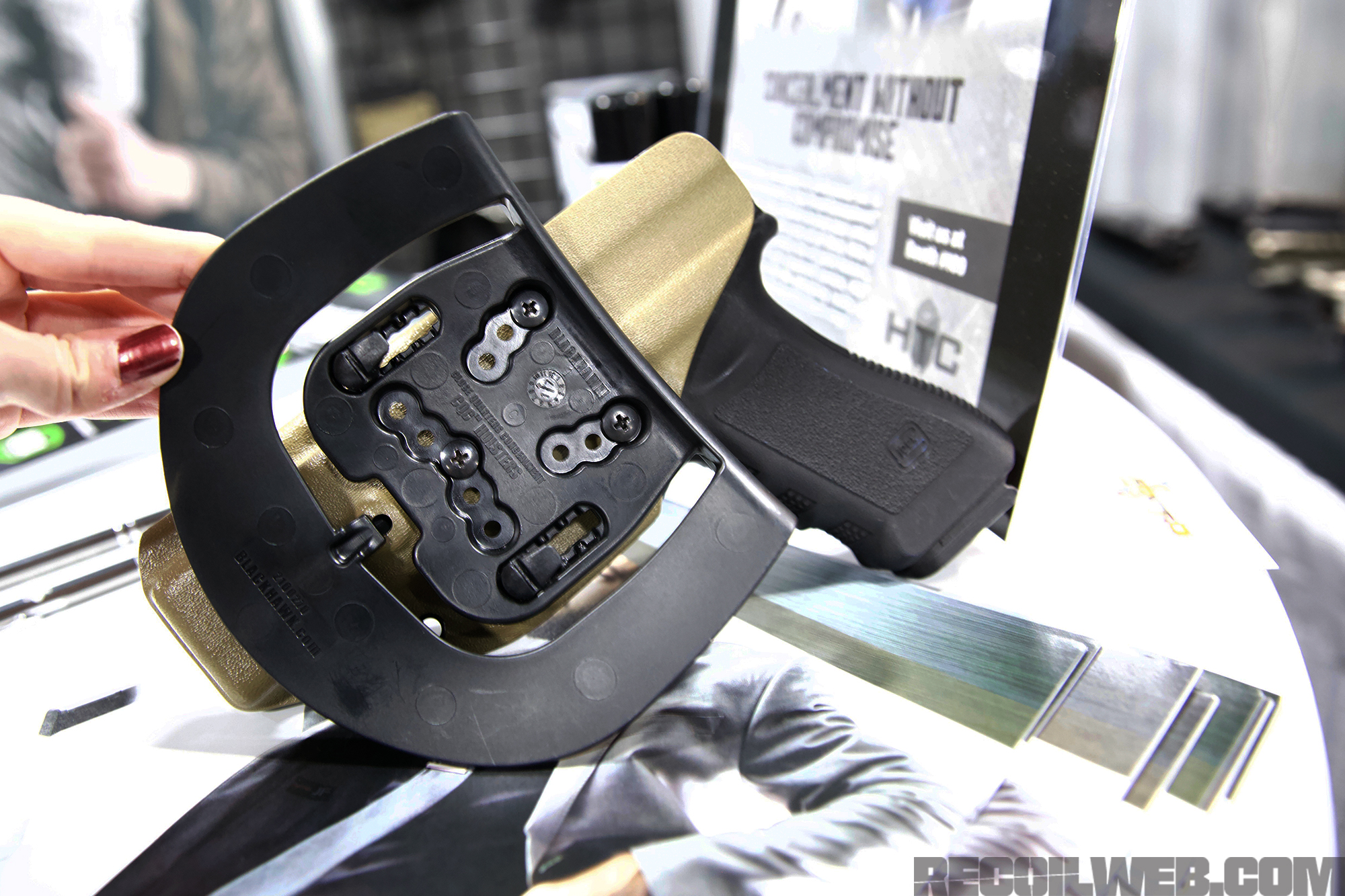 Expanding on its holster platforms, HTC dropped news of the APS  (Adaptive Platform System) during the first day of SHOT with the holster going live online simultaneously. The idea driving the system is compatibility. The APS was crafted specifically to co-exist with commonly available attachment kits and accessories from Safariland, Blade-Tech, Blackhawk, and G-Code.