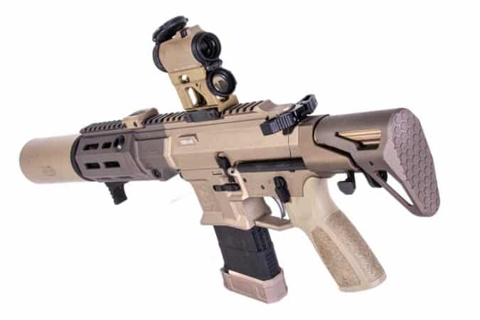 When it comes to a gun that’s stubby and stashable while also chambered in a rifle caliber, the clandestine capability also comes with an awful lot of bang. Maxim Defense spent the following years developing a fix for this next part of the problem — making it more stealthy to mitigate all the blast and gas.