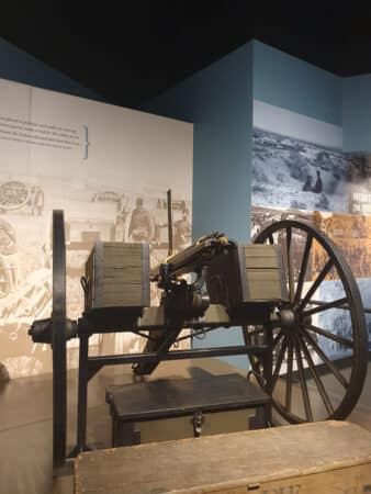 Gear National Infantry Museum & Soldier Center [VISIT] Fred Seiltgen January 9, 2026 Join the Conversation At RECOIL, we review every product fairly and without bias. Making a purchase through one of our links may earn us a small commission, and helps support independent gun reviews. Read our affiliate policy. Find out more about how we test products. The National Infantry Museum was established in 2009 and is located on the grounds of Fort Moore in Columbus, Georgia. Before its closing in 2008, it was housed in the former Fort Benning hospital. In 1998, the 501(c)(3) National Infantry Museum Foundation was formed to plan, raise funds for, and operate a new museum. The Foundation has since formally partnered with the Army to manage the facility. The National Infantry Museum chronicles the story of the United States Army Infantry from the American Revolution to the present, featuring artifacts from all eras of American history. It covers 190,000 square feet with approximately 70,000 pieces on display and emphasizes the values that define the infantry: loyalty, duty, respect, selfless service, honor, integrity, and personal courage. INTERIOR EXHIBITS The Last Hundred Yards As you enter, you’ll be in awe of the museum’s sheer size. After being greeted by the staff, you’ll walk toward the museum’s signature exhibit, “The Last 100 Yards.” As you travel up the sloped ramp, you’ll be fascinated by life-sized dioramas depicting significant battles in the infantry’s history, including Yorktown, Antietam, Soissons, Normandy, Corregidor, Soam-Ni, LZ X-Ray, and Iraq. The soldiers depicted in these scenes are not department store mannequins; they’re cast sculptures of active-duty soldiers who auditioned to represent their predecessors. A Maxim MG08 7.92mm belt-fed water-cooled machine gun. The standard heavy machine gun of WWI Germany. Fort Moore & Columbus Connections Gallery As you exit the Last 100 Yards, the sound of a drill sergeant draws your attention. You’ll see the training transforming ordinary citizens into soldiers, from their first haircut to their midnight march. Besides basic training, you’ll learn about the advanced and specialized training located at Fort Moore, including Airborne, Ranger, Sniper, Pathfinder, and Officer Candidate School. Fort Benning was renamed Fort Moore in 2023. Moore was the subject of the movie We Were Soldiers, starring Mel Gibson, based on his actions commanding the 1st Battalion, 7th Cavalry Regiment, during the 1965 Battle of Ia Drang in Vietnam. Securing Our Freedom/Defining The Nation: 1775-1889 As you enter this new 5,100-square-foot gallery, you will be transported to the years preceding the Revolutionary War and the end of the Frontier Indian Wars. Among the artifacts are various muskets and rifles, a 200-pound mountain howitzer used in the Mexican-American War, a Civil War-era James gun with its innovative rifling system, and the game-changing Gatling gun, forerunner of the modern machine gun. The International Stage: 1898-1920 This gallery explains what drove Americans to join the rush to fight the Spanish-American War. One exhibit includes a porthole from the USS Maine, whose destruction is one of the events that started U.S. involvement in Cuba. Other exhibits include the Philippines campaign and the Boxer Rebellion expedition to defend U.S. business interests in China. Lastly, experience life in the trenches as a WWI Infantryman, surrounded by explosions of artillery and the sounds of passing tanks. World At War: 1920-1947 This gallery tells the story of WWII and contains the museum’s most extensive collection of artifacts. You will follow the rise of the Axis powers and the Greatest Generation’s fight against fascism. You’ll see the equipment and weaponry that gave GIs the tools for victory. Other displays include various uniforms and personal items from both sides, including Audie Murphy’s service ribbons, Hermann Goering’s Field Marshall baton, and Emperor Hirohito’s sword collection. The Dignity Memorial Vietnam Wall is a ¾ scale traveling version of the original Washington, D.C. wall inscribed with the names of over 58,000 patriots who made the ultimate sacrifice. It is now permanently stationed at the museum. The Cold War: 1947-1989 Tensions developed between the United States and the Soviet Union, starting after WWII. Although war was never declared, both sides engaged in proxy wars, with the U.S. trying to stop the spread of Communism. The Cold War gallery takes you from the initial period of post-WWII mistrust to the Korean War, where you’ll learn about the “forgotten war” and why the U.S. Army continues its presence in Korea today. During the Cold War, warfare doctrine and technology took on a whole new dimension with the deployment of theater-level nuclear weapons. One of our most famous artifacts is the M29 Davy Crockett, one of the smallest atomic weapons ever produced. Captain Lewis Millett’s Bayonet Attack: On February 7, 1951, Millett led his soldiers in attacking Hill 180 near Soam-Ni, Korea. Armed with only bayonets and hand grenades, Millett and his company fought hand-to-hand against heavy enemy fire. Their bayonet charge was fought with such brutality that the enemy fled. A Global Presence: 1989-Present The United States has emerged as the predominant world leader and one of the only nations with the global reach to intercede in regional disputes and halt genocidal crises. This gallery chronicles U.S. involvement in Bosnia, Afghanistan, Iraq, and the Global War on Terrorism. A UH-1 Huey drops off troops at LZ X-Ray during the Vietnam War in the Last 100 Yards Exhibit. Ranger Hall of Honor This gallery preserves the legacy of the U.S. Army Rangers and the nearly 200 Rangers who have been inducted into the Ranger Hall of Fame since 1992. A timeline describes the Rangers’ evolution and historical importance from World War II, Korea, Vietnam, and Grenada. Armor & Cavalry Gallery In 2011
