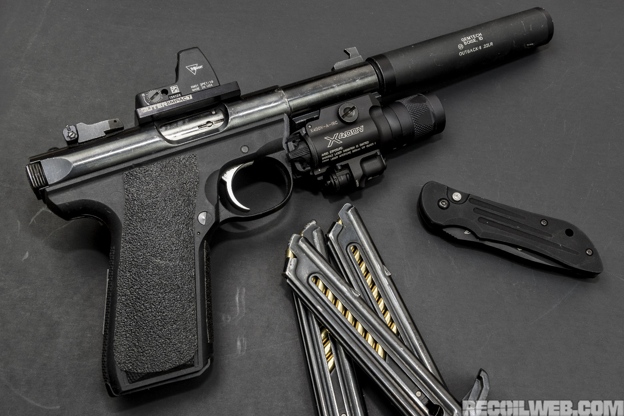 Editorial Red Dots on Rugers: Review of the OuterImpact Adapter Plate Dave Merrill June 28, 2016 1 Comments, Join the Conversation At RECOIL, we review every product fairly and without bias. Making a purchase through one of our links may earn us a small commission, and helps support independent gun reviews. Read our affiliate policy. Find out more about how we test products. We all have one; that project gun that sits in the back of the safe. In my case it's a Ruger 22/45 purchased more than a decade ago–well before options like Picatinny top rails, threaded barrels, or lower accessory rails were standard factory options. Over the years small changes have been made: the bull barrel chopped and threaded, the loaded chamber indicator rendered inoperable, the silly key locking mechanism removed, the magazine safety thrown in the trash, the barrel drilled and tapped for a lower rail. Already being a fan of the handgun with a red dot, I decided to also run that route with the 22/45. For the optic itself I settled on a Trijicon RMR. While one certainly doesn't require something so robust for a rimfire, some added durability never hurt anything–with added bonus points for being the same optic as my carry gun. The initial ‘easy button' would be to just install a Picatinny rail and use a low mount. However, ideally I wanted the lowest height over bore as possible so I began seeking out an optic specific mount. Easily found were mounts for the Docter Optic, which of course would cover other micro red dots that use the same mounting footprint. But still no RMR. Then I came across a company admittedly I'd never heard of: OuterImpact. From what I can gather, OuterImpact was stood up last year and began manufacturing mounts. Their first product was an extended Picatinny rail for a 10/22. From there they moved on to make a small handful of mounts for guns such as Howa, Savage, and Remington. What piqued my interest was their red dot adapter plate for the Ruger Mark I/II/III and the 22/45. With this one direct-attach adapter you can mount more than ten micro red dot sights. Strike Industries makes something similar for a Glock, but I hadn't seen the same item for a Ruger. At an asking price of $40, I thought I'd give it a try. A couple days later the OuterImpact mount arrived in the mail. I opened the package to find the plate, mounting screws, and a pair of sight alignment pins. For some optics you'll need to purchase different mounting screws for an additional $2. Giving the adapter plate a quick once over, I did notice that there were a lot of visible tool marks. But it's going on a gun that's been scratched and beat up for over ten years–pretty means very little in this instance. I was less enthusiastic about the two raw holes drilled in the middle of the plate. In fact, even on the photos from the OuterImpact webpage, these holes don't exist. Only when delving into the informational sheet did I discover what these new and unfinished arrivals are for: The C-More STS and Vortex Razor. The bottom of the OuterImpact adapter plate perfectly matched the contour of my 22/45, and the holes lined up with OEM mounting locations. Installation was undramatic–just be sure to install the adapter plate with the correct orientation. The included torx screws were of the proper length to not over-penetrate. Ensure that you clean out your threads and use some kind of non-permanent thread locker. After dropping in the alignment pins into the appropriate holes for your optic, your MRDS installs in the normal manner. Exactly how this holds up in the long term has yet to be seen, but I'm not terribly concerned given that we're talking about a suppressed .22lr for midnight bunny blasting and not a .50BMG. While perhaps the bore axis could be lower (with an optic installed, your iron sights become dovetail protectors), it is an improvement over the Picatinny rail as you can see from the overlay below: Those experienced with shooting red dots on handguns should have little issue with obtaining the dot. We're not exactly talking a concealed carry weapon here regardless. The finish could be better, and I can only hope the raw holes were an oversight. For more information, you can find OuterImpact online here. Why you can trust RECOIL Since our founding in 2012, RECOIL remains the premier firearms lifestyle publication for the modern shooting enthusiast. We deliver cutting-edge coverage of guns, gear, accessories and technology. We go beyond basic reviews, providing no B.S. buyer’s guides, hands-on testing and expert analysis on everything from firearms and survival equipment to watches and vehicles. Our reviewers are the backbone of our operation and come from diverse shooting backgrounds: Former law enforcement, military veterans, competitive shooters, seasoned hunters and plain old firearms enthusiasts. Furthermore, we’re not just gun experts, but dedicated journalists who adhere to the strictest standards of our profession. At RECOIL, editorial independence is the foundation of everything we publish and the cornerstone of reader trust. Our editors, writers and content creators make all editorial decisions independently, free from outside influence. That boils down to: advertisers don’t dictate our coverage, the outcomes of our reviews or what we recommend in our buyer’s guides. First and always, our commitment is to our audience—ensuring every review and article is accurate, unbiased, and driven by real-world experience. Whether you’re selecting your next firearm, upgrading your gear, or exploring the latest innovations in the shooting world, RECOIL provides the trusted insights you need to make informed decisions. Learn more about our Editorial Standards and how we review products. NEXT STEP: Download Your Free Target Pack from RECOILFor years, RECOIL magazine has treated its readers to a full-size (sometimes full color!) shooting target tucked into each big issue. Now we've compiled over 50 of our m