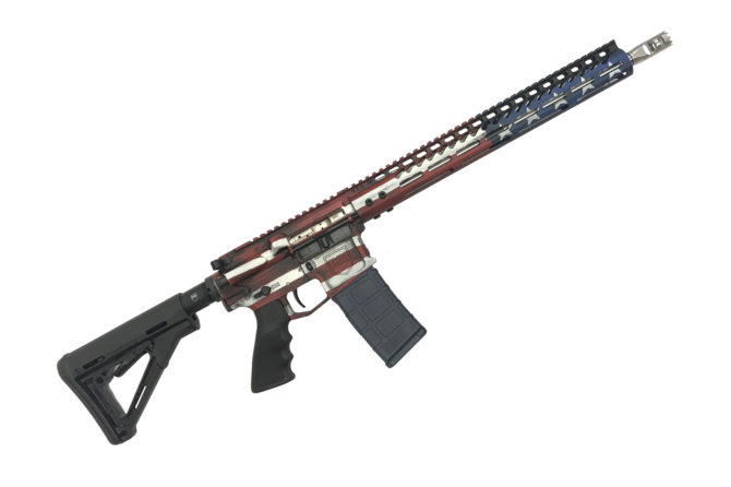 Guns Patriotic Themed Rifles from Dark Storm Industries Candice Horner March 7, 2018 Join the Conversation At RECOIL, we review every product fairly and without bias. Making a purchase through one of our links may earn us a small commission, and helps support independent gun reviews. Read our affiliate policy. Find out more about how we test products. Dark Storm Industries (DSI) has just released its 2018 Signature Series rifle, the DS-15 Freedom Flag 5.56. With an American flag Cerakote finish, the rifle is aptly named and is definitely eye-catching. Not leaving anyone out, DSI offers the Freedom Flag rifle in three variations for compliance purposes. DSI's Signature Series rifles are limited, so if you want one– don't wait too long. In the press release, DSI said: The rifle's heart and soul are the DS-15 7075 billet aluminum lower receiver and DSI 7075 forged upper receiver with a forward assist and ejection port cover. The rifle features a charging handle with an extended tactical latch and a billet ambidextrous 90-degree safety selector. The NiB bolt carrier group provides improved reliability and reduced maintenance. The DSI 16″ 5.56 threaded (1:9) stainless steel barrel and spiked CQB compensator are both finished in the Signature Series brush stainless finish. A Signature Series drop-in trigger offers a nice, crisp 4-lb. trigger pull and short reset. The 15″ extended length Signature Series M-LOK forearm and full-length Picatinny top rail provide the user with plenty of options for lights, sights and laser combinations. Dark Storm's Freedom Flag 5.56 rifle is built with a Magpul CTR adjustable stock, an ambidextrous sling plate,a Hogue rubberized pistol grip and comes with an Amend2 MOD-2 30 round magazine. A custom “battle-worn” Cerakoted American flag caps off this unique rifle that is sure to catch the attention of everyone at the range for its looks as much as for its down-range performance. “The DS-15 Signature Freedom Flag rifle proved to be quite popular at our booth this past SHOT Show,” Ed Newman, co-owner and founder and owner of Dark Storm Industries, commented. “No matter what state you live in or do business in, Dark Storm is the one company you can go to for the largest choice of rifles available to California and other restricted states, including our new Signature Series.” The DS-15 2018 Signature Series 5.56 Freedom Flag rifle is available in a standard, fixed magazine, and featureless platform starting at the patriotic price of $1776. RUNDOWN OF THE STANDARD DS-15 FREEDOM FLAG RIFLE: Battleworn American flag Cerakote finish Brush finish on barrel and compensator 15-inch extended length M-Lok forend Drop-in 4lb trigger Billet 7075 Aluminum lower receiver Forged upper receiver with forward assist and ejection port cover DSI Spec Ops Gen 2 charging handle DSI billet ambi 90 degree safety DSI NiB bolt carrier group DSI steel micro gas block Carbine-length gas system DSI 16-inch 5.56 threaded 1:9 twist rate stainless steel barrel DSI stainless steel compensator Includes an Amend2 30-round magazine Magpul CTR adjustable stock Ambi sling plate Hogue pistol grip Weight: TBD MSRP: $1776 Why you can trust RECOIL Since our founding in 2012, RECOIL remains the premier firearms lifestyle publication for the modern shooting enthusiast. We deliver cutting-edge coverage of guns, gear, accessories and technology. We go beyond basic reviews, providing no B.S. buyer’s guides, hands-on testing and expert analysis on everything from firearms and survival equipment to watches and vehicles. Our reviewers are the backbone of our operation and come from diverse shooting backgrounds: Former law enforcement, military veterans, competitive shooters, seasoned hunters and plain old firearms enthusiasts. Furthermore, we’re not just gun experts, but dedicated journalists who adhere to the strictest standards of our profession. At RECOIL, editorial independence is the foundation of everything we publish and the cornerstone of reader trust. Our editors, writers and content creators make all editorial decisions independently, free from outside influence. That boils down to: advertisers don’t dictate our coverage, the outcomes of our reviews or what we recommend in our buyer’s guides. First and always, our commitment is to our audience—ensuring every review and article is accurate, unbiased, and driven by real-world experience. Whether you’re selecting your next firearm, upgrading your gear, or exploring the latest innovations in the shooting world, RECOIL provides the trusted insights you need to make informed decisions. Learn more about our Editorial Standards and how we review products. NEXT STEP: Download Your Free Target Pack from RECOILFor years, RECOIL magazine has treated its readers to a full-size (sometimes full color!) shooting target tucked into each big issue. Now we've compiled over 50 of our most popular targets into this one digital PDF download. From handgun drills to AR-15 practice, these 50+ targets have you covered. Print off as many as you like (ammo not included). Get your pack of 50 Print-at-Home targets when you subscribe to the RECOIL email newsletter. We'll send you weekly updates on guns, gear, industry news, and special offers from leading manufacturers - your guide to the firearms lifestyle.You want this. Trust Us.