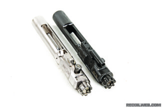 Issue 32 POF Revolution Iain Harrison Join the Conversation At RECOIL, we review every product fairly and without bias. Making a purchase through one of our links may earn us a small commission, and helps support independent gun reviews. Read our affiliate policy. Find out more about how we test products. POF’s Newest Piston Gun Delivers AR-10 Performance in an AR-15 Package Photos by Kenda Lenseigne With every man and his dog making ARs these days, it takes something rather unusual to make it into the pages of RECOIL. Patriot Ordnance Factory has been teasing the 7.62 NATO Revolution for some time now, and we were given a sneak peek over a year ago while it was in its direct impingement (DI) form. Now that a piston-driven production version has been released, we decided to see if it lived up to the hype. The Revolution’s main claim to fame is that it manages to cram 7.62 performance into a 5.56 form factor. Separate the receivers, and you’ll find that the Revolution upper will drop right onto a Mil-spec mousegun lower. The reverse isn’t true, however, as extra material in the 7.62 lower’s bolt hold open catch prevents a 5.56 upper from seating all the way — we were tempted to break out the Dremel just to prove a point but figured the guys at POF might not appreciate us hacking up their baby for a photo op. Still, the pinholes are in the same locations, relative to both calibers. This similarity in size carries over to the bolt carrier group. While we’ve all gotten used to Armalite and DPMS pattern BCGs having a fatter forward section in order to accommodate a bigger case head, the Revolution’s carrier drops straight into an AR-15 upper. The bolt won’t slide into an AR-15 barrel extension, giving the first clue that POF’s engineers have managed to squeeze every last drop of performance out of the available real estate. These days, we’re blasé that the small frame AR platform can be chambered in some pretty outrageous calibers, but there’s always a limit as to how much horsepower can be wrung out of a cartridge that still fits into its magwell. There’s no getting away from the facts that a 5.56 case head measures 0.378 inch in diameter, and Carpenter 158 steel has a tensile strength of 160,000 psi. Reality imposes finite limits; once you start removing material in order to fit larger shells, you eat way at both bolt lifespan and any safety margin. A x39 or Grendel case is about the widest that can safely slide into the space between the AR-15’s bolt lugs, at a cost of reduced chamber pressure and life expectancy. To expect a 0.473-inch diameter .308 case running at 62,000 psi to function in Stoner’s smaller design is a big ask. Science! To achieve the goal of fitting the larger round into a smaller space, some serious number crunching went on behind the scenes, along with the application of advances in materials science. According to our calipers, bolt lugs were made 10 thousandths of an inch wider and 5 thousandths longer. The area immediately behind the lugs grew in diameter, and a bigger extractor sneaked in, while more material was also added between the lugs. In short, every possible way to add strength back into the bolt was exploited, without increasing the overall size when mated to its barrel extension. Finally, as stronger steel than was available in the 1950s is now a reality, a “super alloy” was selected as the billet from which the bolt would be cut. Which one? Well, we posed that question to POF’s founder, Frank DeSomma who was understandably reticent. “Look, if someone wants to buy my gun and perform spectrographic analysis on the bolt, then I can’t stop them, but I’m not going to hand over that information on a plate. I will say that we’ve tested it down to negative 110 degrees, and had less than 5-percent reduction in strength, which might give a clue.” For the rest of this article, subscribe here: RECOIL Issue 32 Why you can trust RECOIL Since our founding in 2012, RECOIL remains the premier firearms lifestyle publication for the modern shooting enthusiast. We deliver cutting-edge coverage of guns, gear, accessories and technology. We go beyond basic reviews, providing no B.S. buyer’s guides, hands-on testing and expert analysis on everything from firearms and survival equipment to watches and vehicles. Our reviewers are the backbone of our operation and come from diverse shooting backgrounds: Former law enforcement, military veterans, competitive shooters, seasoned hunters and plain old firearms enthusiasts. Furthermore, we’re not just gun experts, but dedicated journalists who adhere to the strictest standards of our profession. At RECOIL, editorial independence is the foundation of everything we publish and the cornerstone of reader trust. Our editors, writers and content creators make all editorial decisions independently, free from outside influence. That boils down to: advertisers don’t dictate our coverage, the outcomes of our reviews or what we recommend in our buyer’s guides. First and always, our commitment is to our audience—ensuring every review and article is accurate, unbiased, and driven by real-world experience. Whether you’re selecting your next firearm, upgrading your gear, or exploring the latest innovations in the shooting world, RECOIL provides the trusted insights you need to make informed decisions. Learn more about our Editorial Standards and how we review products. NEXT STEP: Download Your Free Target Pack from RECOILFor years, RECOIL magazine has treated its readers to a full-size (sometimes full color!) shooting target tucked into each big issue. Now we've compiled over 50 of our most popular targets into this one digital PDF download. From handgun drills to AR-15 practice, these 50+ targets have you covered. Print off as many as you like (ammo not included). Get your pack of 50 Print-at-Home targets when you subscribe to the RECOIL email newsletter. We'll send you weekly updates on gun