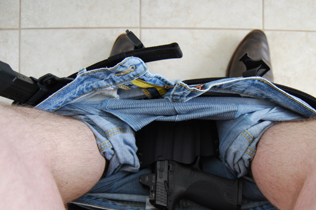 Defense Public Bathroom Breaks While Armed Matt Jacques July 3, 2013 1 Comments, Join the Conversation At RECOIL, we review every product fairly and without bias. Making a purchase through one of our links may earn us a small commission, and helps support independent gun reviews. Read our affiliate policy. Find out more about how we test products. Weapon storage during that moment of vulnerability: Public bathroom breaks and your EDC. It may sound counter-intuitive and you can bet there will be many who decry the need for such effort — but more than one squared away person has done something stupid. Here's a way to avoid the mistake so many guys make and so few admit to. There is a topic that comes up quite often among those who carry a pistol every day, or are training to do, but it only rarely presents itself in an open forum. It is more of an after-hour or after-class “Hey, got a minute?“ scenario. I thought this would be a good time and opportunity to propose the question in an open format and get guys thinking on how to safely keep positive control of your handgun while taking that needed break away from your personal porcelain. This topic is frequently broached thusly: “What do you do with your handgun in a public bathroom during, you know, a … sit down session?” For the last few decades, I have had a gun on me in nearly every public scenario I can think of and in all sorts of clothing situations, from undercover mode to full SWAT kit. Now since my retirement, I fit in with the rest of the populace with everyday carry, and always concealed. No matter the venue, if you forget your heater in a public bathroom and aren't lucky enough to remember quickly and retrieve it, you can guarantee that there will be a seemingly unending series of problems. These will run the gamut of consequences. If the police are contacted, you may eventually get it back, but there is certainly possibility of criminal charges (weapon recovery and charges will depend on a lot of stuff) . The absolute worst case scenario of course is, finders, keepers. The latter then could result in any sort of tragedy, whether it is discovered by a curious child and they are injured or it ends up in the hands of someone taking criminal action later. Both will come back around to haunt you. As responsible armed individuals, we need to ensure the security of our firearm is addressed in all likely situations, even the ones rarely discussed in polite society. So how do we keep track of the hollow point dispenser while taking a seat and doing that needed paperwork? Over the years I have found that once the pants reach knee height, I can re-fasten my belt in a hasty fashion. Some belts lend themselves to this more readily than others and a QD buckle such as the one used (mine is an Ares Gear Enhanced Ranger) is easiest to for this. I then lower the rig the rest of the way as I come to rest in that final position. This method will keep the pistol upright and it never leaves the holster, so there is zero chance of it being left behind. I have found that you may have to keep your feet spread apart slightly depending on your belt and holster selection, but with this sort of carry setup it is a very effective way of keeping control of your handgun. Public Bathroom Breaks While Armed Recently I have been carrying my M&P in a Raven Concealment Systems Vanguard II minimalist appendix holster. This offered a new problem in that the single quick mount strap would not retain the upright position, and of course it is carried in the appendix position. I have found the best solution with this concealed carry option to be unclipping the QMS strap and placing the gun in my pants crotch, with the VGII trigger guard still attached. There are a few reasons for this: I know where it is. There is zero chance I leave that bathroom and forget it. If I forget it for a second, I will quickly realize it once I pull up and catch it in the doo-dads … then I can simply snap up, reattach the VGII and buckle up. Tactically speaking, it is where I can still feasibly get to it should I need it in that vulnerable moment I am currently in, and the trigger is still covered. This method can also be used with a paddle or similar style holster that can be removed once the belt is unbuckled. The one pictured is an RCS Phantom LB with QMS Straps. Your setup will drive how you can safely control your handgun in this scenario. But I leave you with this: Keeping it on you or attached to you will greatly reduce the chances of losing that handgun. Keeping it in the holster, whether attached to the belt or not, minimizes the risk of a negligent discharge. MJ About the author: Matt Jacques is the training director for Victory First Consulting. He recently left the service of the Department of State’s DSS (Diplomatic Security Service), where he was the Operations Chief for FTU (Firearms Training Unit) to begin teaching full time. A former Marine MP assigned to the Presidential Helicopter Squadron, he spent over a decade as police officer, undercover detective and SWAT team member before surviving a near-fatal injury inflicted by a wanted felon that forced an end to his LE career. Following his recovery, “Jake” spent two years as the Senior Manager for Weapons Integration and Training Operations with FNH USA, where he was involved in every aspect of the SCAR program as well as all development and training aspects of the M249, M240 and the FN SPR sniper rifle systems. You can follow Victory First Consulting on the web or via their Facebook page. [Editor's note: Here are a few thoughts from Matt on the potential issues of a violent encounter while carrying concealed. I will provide more background in his next article, but this one speaks quite eloquently for itself. David Reeder] Why you can trust RECOIL Since our founding in 2012, RECOIL remains the premier firearms lifestyle publication for the modern shooting enthusiast. We deliver cutting-edge coverage of gun
