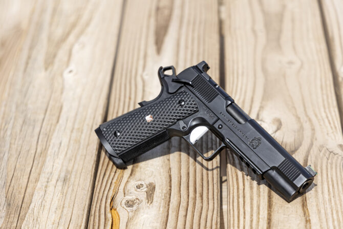 Reviews Springfield Armory & 10-8 Performance Master Class 1911 [REVIEW] Tom Marshall April 27, 2026 Join the Conversation At RECOIL, we review every product fairly and without bias. Making a purchase through one of our links may earn us a small commission, and helps support independent gun reviews. Read our affiliate policy. Find out more about how we test products. Photos By Matchgrade Media and Tom Marshall They say legends never die and, in the firearms world, few designs are as legendary as the 1911. In recent years, there has been a massive uptick in market demand for both single- and double-stack 1911s. It’s iconic lines, battlefield pedigree, and undisputed trigger have imbued it with timeless curb appeal. Many of the modern iterations have focused on innovating or expanding on the original design — new calibers, higher capacity, different magazines, performance-boosting additions like ports or comps. Among all the buzz at SHOT Show 2026, Springfield and Lipsey’s announced an exclusive collaboration with retired FBI SWAT veteran and 1911 pistolsmith Hilton Yam of 10-8 Performance. Understated, elegant, and utterly functional, this pistol truly earns its namesake: the 10-8 Performance Masterclass. Springfield Armory 1911 10-8 Performance Master Class AOS .45 Handgun Lipsey's $2,061.99 Guns.com $2,061.99 Prices accurate at time of publishing. Affiliate disclosure. FIRST LOOKS & FIRST SHOTS We’re not 1911 purists. While it is perfectly acceptable and wholly American to own pistols for historic value or ballistic amusement, a sidearm that’s intended for anything more ought to be at least compatible with 21st century innovation. Having said that, there’s also no need to turn a 1911 into something else entirely. The Masterclass walks this line with all the grace of a ballerina en pointe. The exterior is a clean, slab-sided tribute to the history of custom practical 1911s with a mix of traditional and modern appointments. The railed frame, Agency optics cut, G10 grips and fiber-optic front sight are thoroughly modern additions that keep the Masterclass up to par with current duty-pistol trends. But these features are offset by others that serve as distinct nods to the historical cottage industry of high-end custom single stacks. The square trigger guard is a notable homage to the likes of the late Armand Swenson. The solid trigger, 20-LPI checkering, and skeletonized hammer can all be found sprinkled throughout the catalogs of 1911 builders going back five decades. We were particularly intrigued by the slide serrations, more coarse than traditional those on an original 1911 but not blocky, sharp, or overly stylized — just slightly abbreviated, ending in subtle angled swipes. Those who are familiar with 10-8 Performance or Yam’s custom builds from years past may recognize the style. This is a great signature that is not only a part of custom 1911 history, but of the legacy of 10-8 Performance itself. The barrel is finished in black DLC, with the slide and frame nearly color-matched with black cerakote. The mainspring housing includes a two-piece magwell that remains unobtrusive while making reloads a little smoother. In the spirit of 1911 traditionalism, we chose to run our performance review with iron sights only — a rarity for us nowadays. The serrated, U-notch rear was fast and forgiving. The green fiber-optic front was thick enough to sink quickly into the notch and provided a fast, bright pick-up point under desert sun. The recoil was exactly what we like in a Government size 1911, soft and predictable with a slight wave-like feel to it. In recent years, it seems that pistols have trended more toward full-size frames with shorter slides. This often creates a short, snappy recoil impulse with a quick return-to-zero that appeals to many shooters. But the heavier slide and longer stroke cycle create an undeniably smooth shooting experience that feels like the ballistic equivalent of driving a Lincoln Towne Car. We shot C-zone steel as far as 50 yards. Hits were a little harder to come by at that yardage but still happened regularly. On paper, groups were as good or better than any other pistol we’ve ever shot, and we experienced zero stoppages or malfunctions of any kind with a grab bag of ammo several hundred rounds deep. We’d say it’s boringly consistent, but its hard to call a gun this rich in niche Browning history a bore of any kind. The only thing worth noting — we refuse to call it a complaint — is that the square trigger guard does hamper your holster choice. Unless, of course, you run a rail-frame 1911 as intended: with a light on it. In that case, holster selection remains anything that will accept your weapon light of choice. With 1911s being thinner than a lot of striker-fired guns, a light-equipped Masterclass should fit many (most?) of the semi-universal holster on the market whose retention mechanism is molded around the light. THE REST OF THE STORY Not all “signature guns” are created equal, but the Masterclass 1911 is one of the best examples of this type of collaboration we’ve seen. Far more than an OEM product with a different roll mark, the Masterclass includes parts designed and released by 10-8 Performance as well as internal specifications personally dictated by founder Hilton Yam whose 21-year career as an FBI Special Agent included 19 on SWAT and was inextricably linked to the 1911 platform. During this time period, FBI’s SWAT teams, as well as the Hostage Rescue Team, were carrying Springfield Professional 1911s in .45 ACP. As his team’s lead firearms instructor, and a USPSA competitor, he spent years honing his pistol craft on Browning’s iconic single-stack design. His competition experience led him to take a more in-depth interest in gunsmithing the 1911. This knowledge, fused with his real-world operational experience carrying it for tactical duty, led to the genesis of 10-8 Performance — which released a line of cu