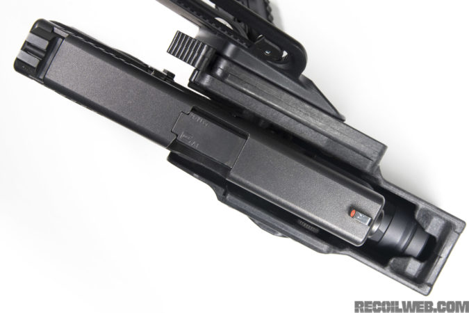Guns Surefire HD1-R Holster and X300UH-B Light Combo Dave Merrill May 16, 2017 Join the Conversation At RECOIL, we review every product fairly and without bias. Making a purchase through one of our links may earn us a small commission, and helps support independent gun reviews. Read our affiliate policy. Find out more about how we test products. Officially rolled out at this year's NRA Annual Meeting in Atlanta was a new holster from Surefire: The HD1-R Masterfire. We got our hands on one shortly thereafter and have been giving it a good once over. What makes the HD1-R unique is that it isn't pistol-specific but instead is weapon mounted light (WML) specific. This allows a high degree of versatility in terms of pistols and accessories such as optics, compensators, and even some silencers. While we don't have an exhaustive list of compatible pistols, Surefire tells us all of the following works with the HD1-R: Beretta: 92 FS Vertex, 92A1, 96A1, M9A3, M9A1 22, 92F SR22, 92G-SD Colt: 1911 variants with accessory rail FN USA: FN 509, FNS series, FNX series, FN Five-seven series Glock (Gen 3 & Gen 4): 17, 17L, 18, 19, 20, 21, 22, 23, 24, 30, 31, 34, 35, 37, 38, 40 Sig Sauer: P226, P229, P250, P320, SP2022, X5 At the surface level there are similar OWB holsters on the market, most notably the X-Fer V2 from Armordillo Concealment. What makes the HD1-R a standout is the active retention and flexibility. One downside to the universal nature that you may have already noticed is the not every trigger will be completely covered. While you can see the Glock trigger partially exposed throughout this article, it'd be damn hard to actually pull the trigger on one when holstered. The handgun is secured in place until the primary lock is disengaged with the thumb during the draw. Speaking of the draw, the HD1-R might be a little different than you're used to because you pivot forward off of the weapon light to release it. Similarly, during reholstering you lead with the WML and rock it back to lock in place. It may sound strange but it's fairly intuitive. For those with smaller hands, Surefire includes two extensions for the primary lock. These just snap in place and a small screw is inserted from the rear; you don't have to do any major surgery. The standard mount is adjustable for cant and belt width. Thoughtfully, these are phillips head screws instead of hex or torx. If you don't care for the Surefire mount, where there's a cordless drill there's a way. Adapting a Bladetech, Safariland, or other base should be far from insurmountable. There's a secondary lock in addition to the primary lock. You can see how this works below: Additionally, you can configure the HD1-R to automatically toggle the light on during the draw. Particularly noteworthy is that the WML also automatically turns off when holstered. The utility of such a feature is up to debate, but it's a selectable option not often seen in the holster realm. Unfortunately for those who have a drawer full of Surefire pistol lights already, in order to achieve this additional functionality over what's currently attainable, Surefire had to roll out a new series of lights. Shown below is the X300UH-B and the changes required specifically for the HD1-R. The HD1-R can only be used with the following [new] weapon mounted lights: X300UH-B (600 lumens of white light, featured in this article) X400UH-A-RD (600 lumens of white light + red laser) X400UH-A-GN (600 lumens of white light + green laser) XH15 (350 lumens of white light) We would anticipate V-series (infrared) options coming in the future. The real surprise on this list is the XH15, a new polymer WML from Surefire. It's not as bright as the others, sporting only 350 lumens, but it's also priced aggressively at about half the MSRP of the X300UH-B. While there might be a holster made for the X300U-B that a pistol equipped with an X300UH-B fits into, we haven't found one yet. The locking points on the bezel give the H-series a larger footprint. [Left to Right: X300, X300U-A, X300U-B, X300UH-B] The proprietary light and lack of X300U holster compatibility is going to be a turn off for many regarding individual purchase. It also appears that there currently isn't a left-hand option. It's probably best to think of the HD1-R Masterfire as a duty holster for military and law enforcement; it's not hard to imagine this as a large department purchase. As far as how it holds up long term? We'll have to get back with you after we get some more time with it. [For more information, you can visit Surefire online here] Why you can trust RECOIL Since our founding in 2012, RECOIL remains the premier firearms lifestyle publication for the modern shooting enthusiast. We deliver cutting-edge coverage of guns, gear, accessories and technology. We go beyond basic reviews, providing no B.S. buyer’s guides, hands-on testing and expert analysis on everything from firearms and survival equipment to watches and vehicles. Our reviewers are the backbone of our operation and come from diverse shooting backgrounds: Former law enforcement, military veterans, competitive shooters, seasoned hunters and plain old firearms enthusiasts. Furthermore, we’re not just gun experts, but dedicated journalists who adhere to the strictest standards of our profession. At RECOIL, editorial independence is the foundation of everything we publish and the cornerstone of reader trust. Our editors, writers and content creators make all editorial decisions independently, free from outside influence. That boils down to: advertisers don’t dictate our coverage, the outcomes of our reviews or what we recommend in our buyer’s guides. First and always, our commitment is to our audience—ensuring every review and article is accurate, unbiased, and driven by real-world experience. Whether you’re selecting your next firearm, upgrading your gear, or exploring the latest innovations in the shooting world, RECOIL provides the trusted insights you need t